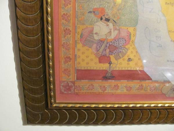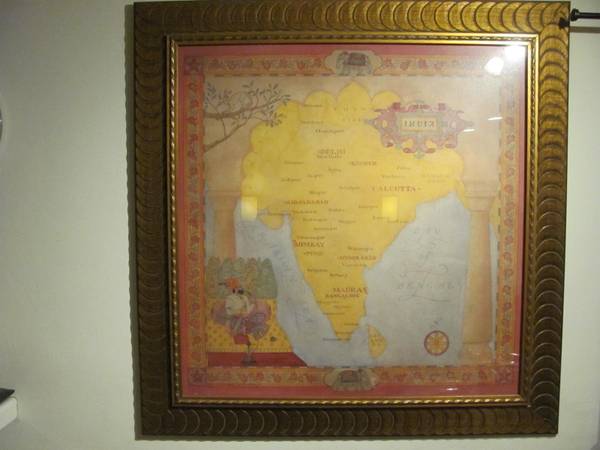 India Cartography Art Piece- Large 46" by 46" Exquisite Wood Frame. By Redstone Studios