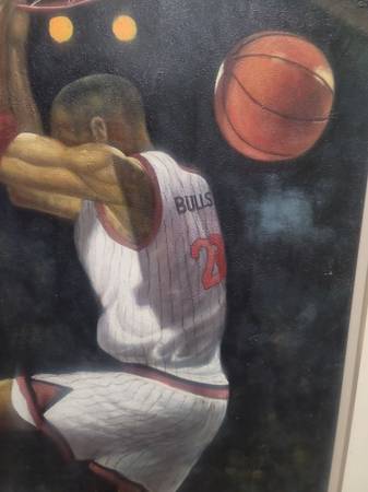 Beautiful old but Oil Paint of Bulls #23 Basketball Player 45" X 33" inches
