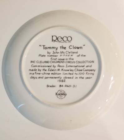 Beautiful Two vintage plates "Tommy the Clown"by John Mc Clelland plate nr 4705K first issue in the Mc Clelland Children Circus Collection " &"Katie the Tightrope Walker"plate nr H19335 second...