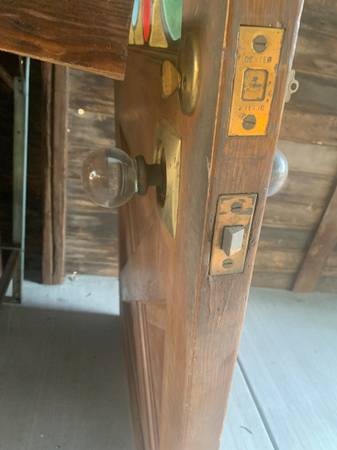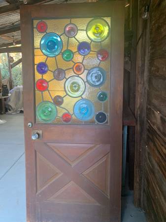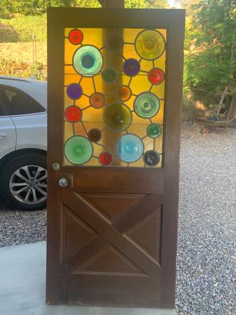 I’m selling a very unique and amazing door that has been in storage for years. It may have come from a home in the hunting beach area. From what I understand the man that I inherited this from, his home was put into eminent domain. He pulled the door and kept it all these years. That’s a story that I’ve heard but I could be completely wrong. It’s 35 7/8” x 80” x 1 11/16” thick. It’s real wood. There’s a strip of metal that has come undone. It needs to be soldered back on. The key in the picture fits in but doesn’t turn. We would love to keep this but we have no place to make it work. Our loss is your gain. $1500.00 Cash. Ask for Mike