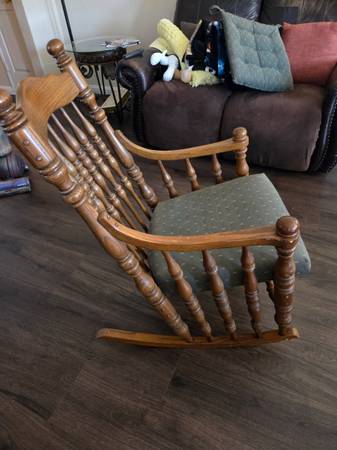 This is a Virginia House Furniture Solid maplewood rocking chair. It was purchased 34 years ago prior to the bith of my son. We are downsizing an it is no longer needed. Selling for $300.00 dollars OBO. Chair is in excellent condition. Must see to appreciate.