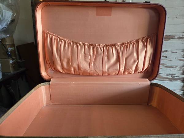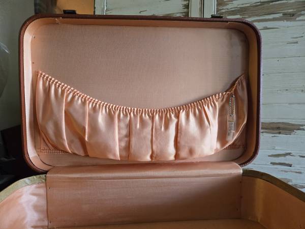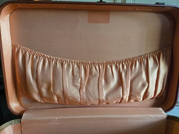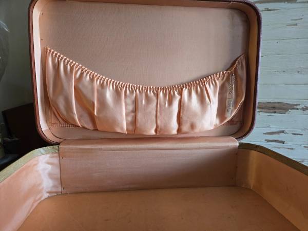1940 Vintage Carilite 3 piece luggage set. In great shape for the age, tweed and leather hardshell. Makeup case does has stains, other two pieces don't. Peach color satin lining. Large 26inch long,...