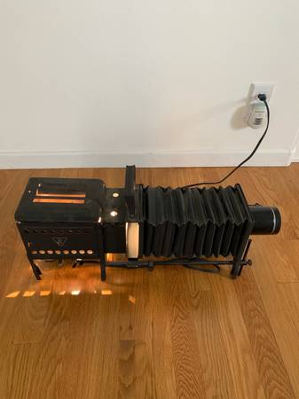 Bausch & Lomb Optical CO. square slide projector for camera slides. Type 41-21-15. It has working 500w bulb and all parts work. No damage or tears in baffle. Also is a great light fixture for...