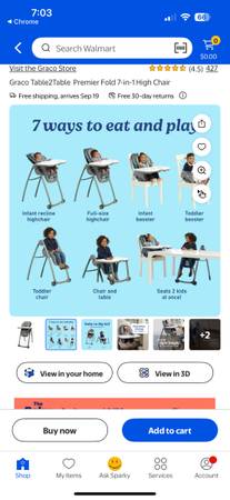 If the post is up it’s available. Very clean and lightly used high chair by Graco. This version is great because it can be transformed into a small table and chair for toddlers and It has a removable infant booster as well that can be strapped to a regular chair. See the last pic for the overview of the different options. Everything works as it should. This is over $200 new before tax. Great discount! Thanks for looking.