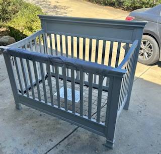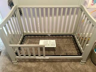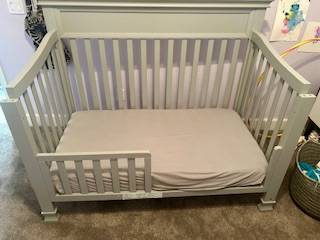 Grey CONVERTIBLE CRIB with Mattress & Toddler Bed Conversion Kit.