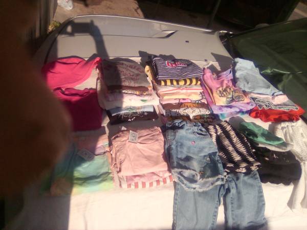 Take all for 40 .there are a lot with tags still on them 20 and 30 dollar tags there are tshirts, shorts, skirts, pants, rompers, one piece, dresses jackets or sweat shirts , socks a baby chair, some toys and stuffed animals. There are multiple sizes 7-8 and 10-12 and 14-16 never the less just some of the tags I seen added up is 160dollars that's just 9 there is more all are like brand new I am only asking $40 for everything would like to get rid of them and sure someone would enjoy . I have no room . So 40 and come pickup in santee