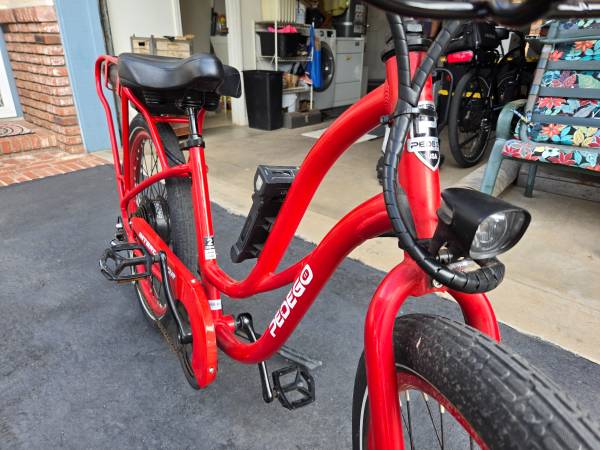 Pedego Interceptor, beautiful red E-bike. Barely used. Fully equipped. 8 gears, plus 5 degrees of pedal assist, and throttle. Here are the details: