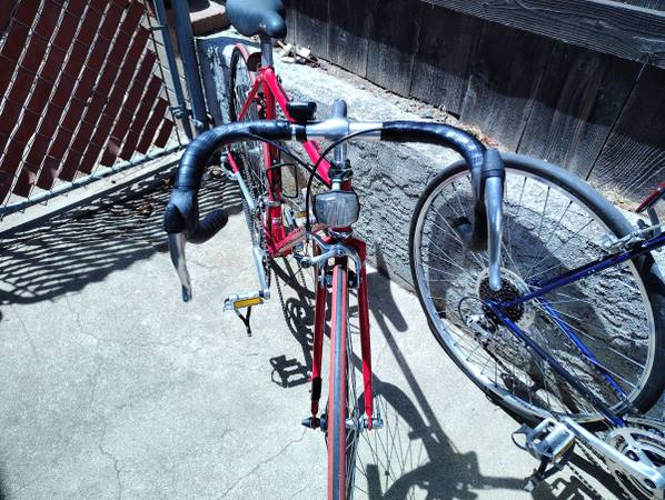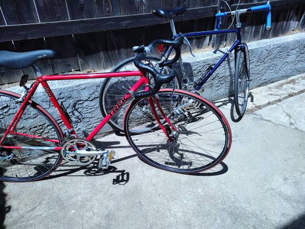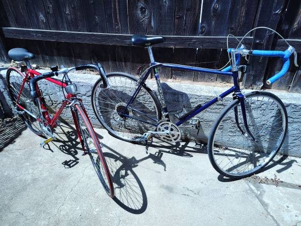 Smaller red bike has indexed shifting 700c tires Larger blue bike has 27 inch wheels with new Continental tires 200 each 350 for both
