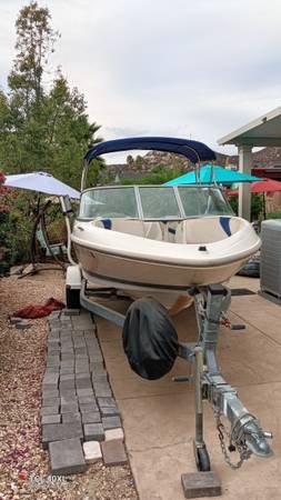 18 foot family sport boat, 7 foot beam, open bow with trailer. Two thousand pound dry weight, 7 passenger max 135 hp Mercury inboard/, outboard. U shaped cockpit seating, back to back with optional lounger seating and built in cooler under rear passenger seat. Twenty one to 24 gallon gas tank with range of 80 miles. Cruising speed of 23.8 mph. AM/FM CD player. Solar battery trickle charger. Trailer in good shape with new waterproof led tail lights etc. Also have extras. Good Condition. Cash only no trades..No low ball offers please.