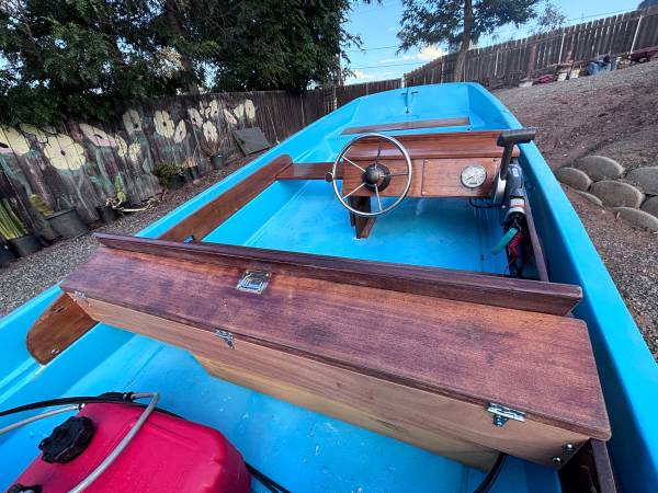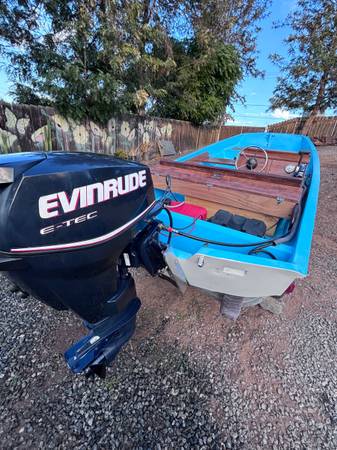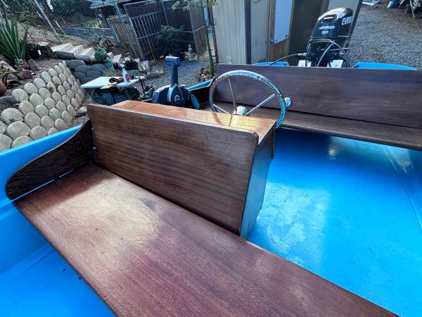 Beautiful restored 1963 Classic Boston whaler original 13’4” model with iconic blue deck & the rare super sport mahogany wood interior w console and rear storage hatch. Own a price of history! Pristine Evinrude Etec 30hp key start with auto trim- less than 250hrs. Maintenance done at Sunset Marine. Starts on first turn every time.-has only seen fresh water but will handle the bays and nice days on the open ocean- people take these back and forth to Catalina every year, weather permitting!