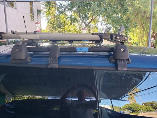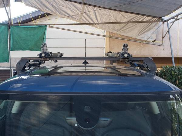 Mont Blanc roof rack. Fits 2008 - 2023 Mini hard top. And any other care with roof gutter 48 inch or less. Thule bike rack with locks. Quick release hubs, only. Roof rack has locks also with the...