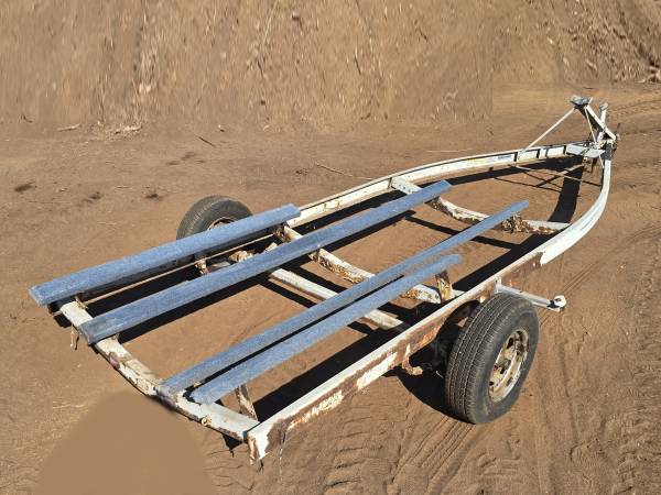 1985 Conroy single axle boat trailer, trailer's dimensions are in the pictures, 16.5'-18' boats, 2,100 pound boat is the maximum rating, this trailer had a 17' Glastron on it, tires are in good condition however one tire has a slow leak because it has a nail in it, uses a 2" ball, no paperwork other than a bill of sale from me, does have a readable VIN, no license plate, located in El Cajon 92019, $300 make an offer, call or text 619 787 798 seven Rod.