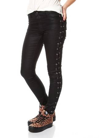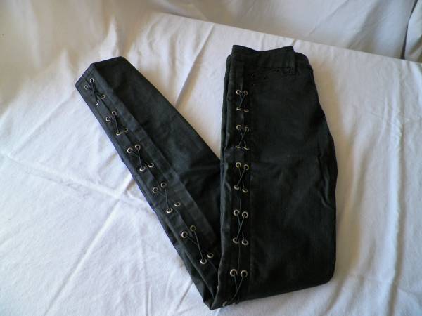 RES Denim WHIPLASH 26" Waist Size 3 Kitty Skinny Black Laced Leg Jean Pants