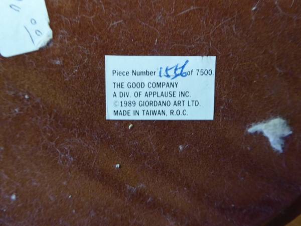 Santa Clause Piece Number 1556 of 7500 made by the Good Company a DIV. of Applause Inc. 1989 Giordano Art Ltd. Made in Taiwan, R.O.C. For more information call Bill at . Please call me since I...