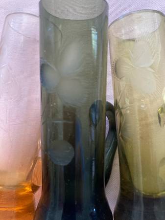 Set of six hand cut Different colored glasses in perfect condition. Only $19. Additional Photos show some of our Other items for sale. Press “ see more from this seller” For other unusual hard to...