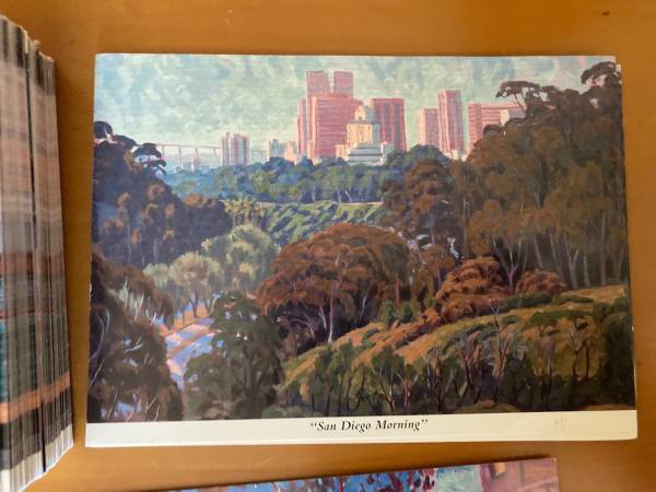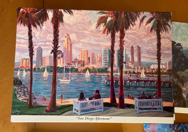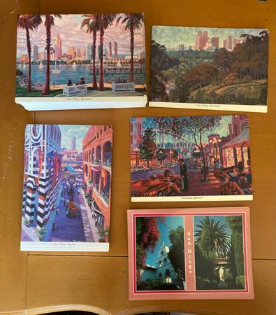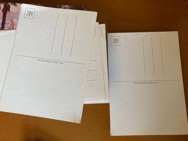San Diego Postcard $1 Each Buy them all, 2 for $1 John Cosby Artist San Diego Skyline Gaslamp Quarter San Diego Morning San Diego Afternoon William Hartshorn Photographer San Diego Mission Pick up...