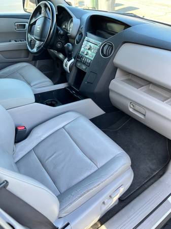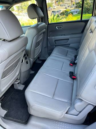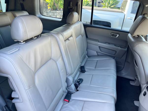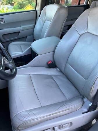The exterior of the Pilot is mostly in good condition. I recently waxed the entire body, and the paint still holds its shine. As you see in the picture, there is a dent on the passenger side real panel. Interior looks amazing. The front seats had seat covers on most of the time and do have a little bit of cracking in the leather on the outer part of the seat. The second row looks great, and the third row looks new.