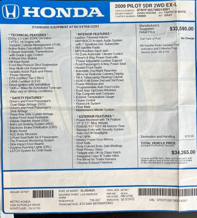 This Honda Pilot is FULLY LOADED. See the picture of the original window sticker. All features are fully functional and in good condition.