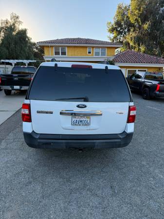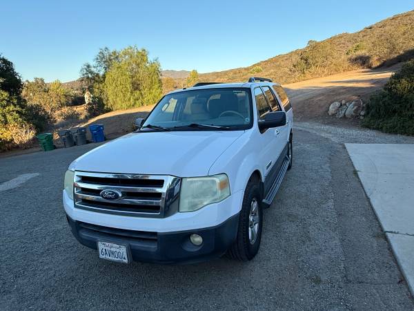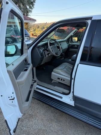 2007 Ford Expedition in pretty good condition. Vehicle runs perfectly. White exterior with tan leather interior. TV screen in ceiling and newer tires. A few little scratches and fix it items. This is a good deal though. Vehicle has always been maintained and regular oil changes over the years.