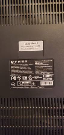 Dynex 37" non-smart TV. Was given as part of a bundle electronic deal and have no use for. Was Mall mounted so missing the legs, otherwise works fine. Perfect candidate for streaming USB stick...