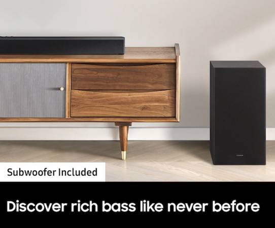 Brand new in a box, never been opened or used. PRICE IS FIRM! For pick up only in El Cajon!! Turn up the bass with a wireless subwoofer, which comes included with your soundbar. Easily connect your soundbar to your TV by connecting wirelessly (Bluetooth). Specs:
