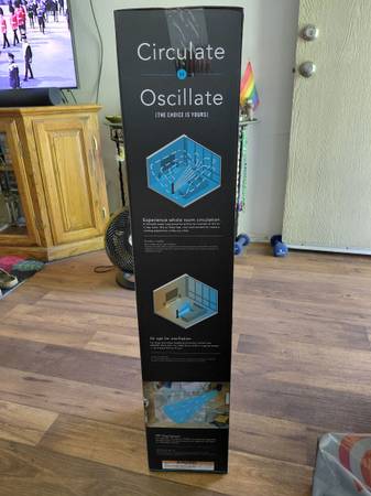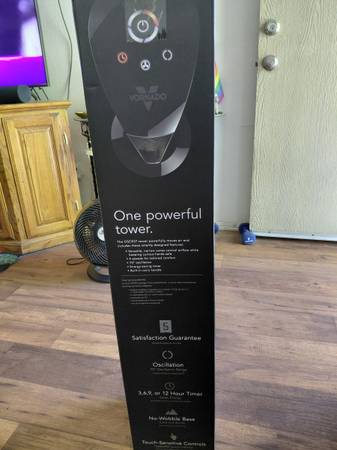 Vornado oscillating tower fan,unopened,4 speeds,timer,touch sensitive.call # for directions.no emails please.