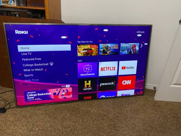 TV is in excellent condition. Comes complete with remote. There is a wall mount that is attached to the TV and is included. There is also as ROKU streaming device included with the TV