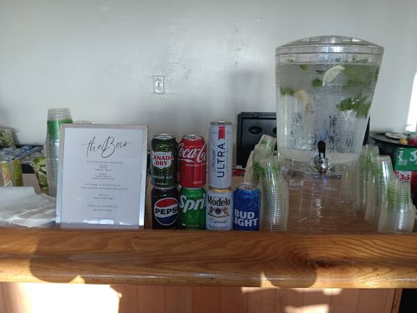 I can provide ice, cups, tubs to ice beverage, coolers to store ice, spa water, and garnishes for all drinks for a fee.
