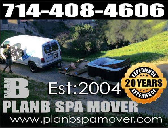 PLAN B SPA MOVER ~ PROFESSIONAL / LOW COST SPA MOVERS ~ ESTABLISHED IN 2004 ~ LICENSED AND FULLY INSURED ~ WE MOVE SPAS, HOT TUB, JACUZZI, SWIM SPA ~ TUFF SHED ~ BBQ ISLAND ~ WE OFFER MOVING, HAULING, TRANSPORT, REMOVALS, DISPOSAL, RELOCATION AND MUCH MORE