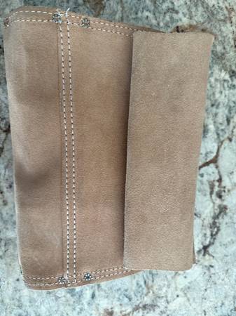 Heavy duty suede leather. Two main nail and tool pockets and 6 smaller pockets fits pliers, nail sets, pencils, etc. Fits belts up to two and three quarter inches wide. 2 steel hammer loops. May be...