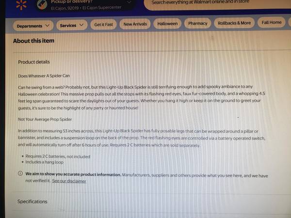 53" Light Up Giant Spider Decoration Brand New Never Used in Box