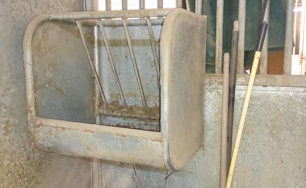 Lot of 8-10 horse feeders out of horse barn. All or nothing; if there's 8.....then $400. If 10.......then $500. Removal is your task. Not much trouble, just a simple bolt in; three already removed as shown. These are heavy feeders, not Tractor Supply junk.