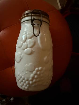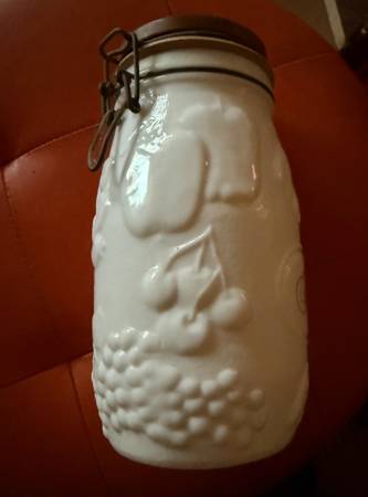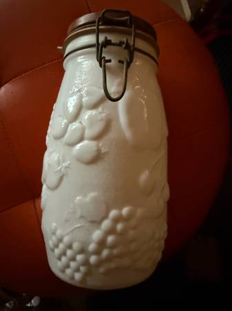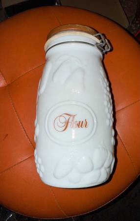 Wheaton Milk Glass Flour Canister 1.5 Liter Embossed Fruit Numbered