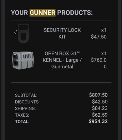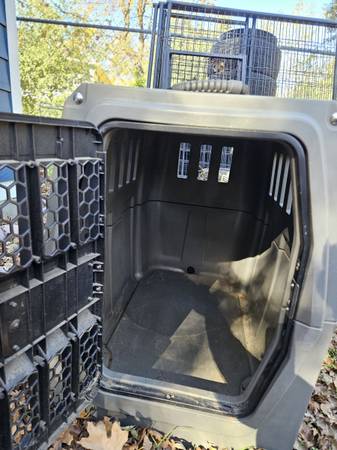 Large gunner kennel with security lock kit. Fits my 90lb shepherd. Very safe and sturdy