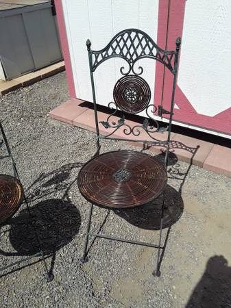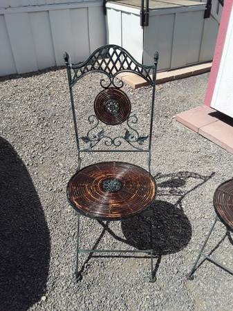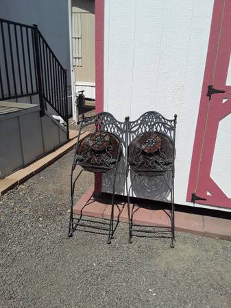 PATIO FOLDING CHAIRS IN LIKE NEW CONDITION. CHAIRS ARE VERY ATTRACIVE, ORNAMENTAL DESIGN. FOR A FAST REPLY PHONE OR TEXT JOHN 6I9-507-9565 SI HABLA ESPANOL.