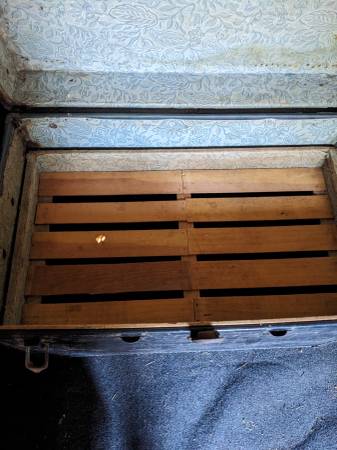 Antique steamer trunk Two inner trays Width 34" Height 23" Depth 20" Overall good condition for age, maim latch is loose, great restoration project or just cool coffee table or storage. $50