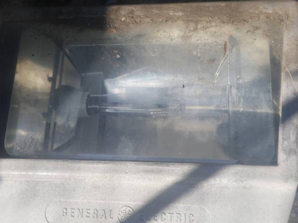 General Electric Sodium vapor parking lot light with mount. Bulb condition unknown. Have three. Also work as "Grow Lights"