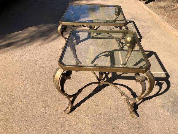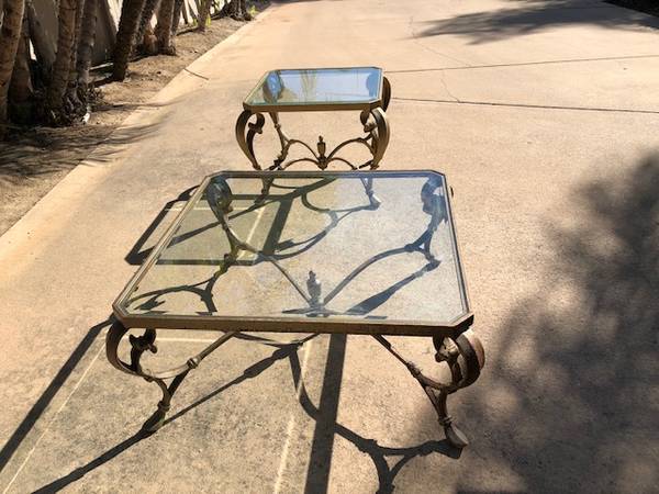 We are selling these two glass tables. These are very heavy tables. The smaller end table is in great condition. The larger coffee table does have some corrosion that can be repaired. These were...