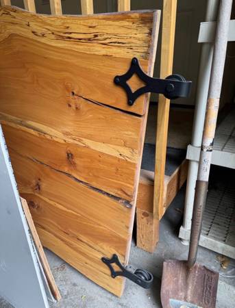 8.4 feet x 3.8 feet dimensions Barely used in the house - has a slight warp but no damage or usage on the door itself.
