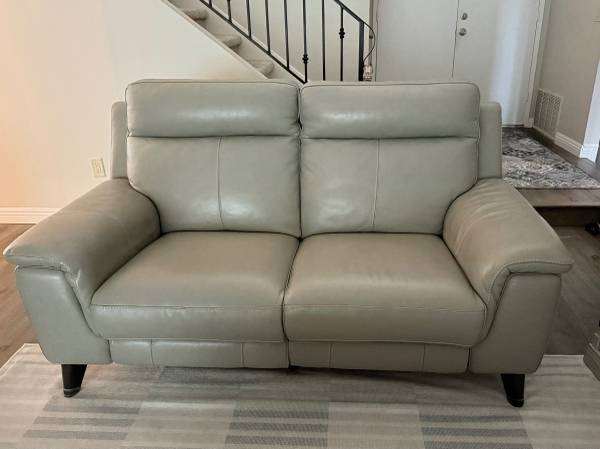 Light gray leather sofa and couch. All seats recline. USB connections on all sides as well where the reclining buttons are. They are in great condition. Have had for 2 years but it’s just not the right fit for us anymore.