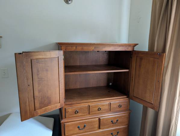 1990s Ethan Allen Country Crossings Door Chest 36ʺW × 19ʺD × 62ʺH Excellent to Good condition. The top of it has some wood damage and strange black markings that cannot be seen unless you're on a...