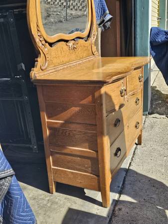 This is a great dresser for someone who can fix. The mirror braces are broken and second drawer is damaged from careless movers. I am seeking someone that would like to take it off my hands and fix themselves. $75 is asking for or best offer. It is in storage can meet you there.