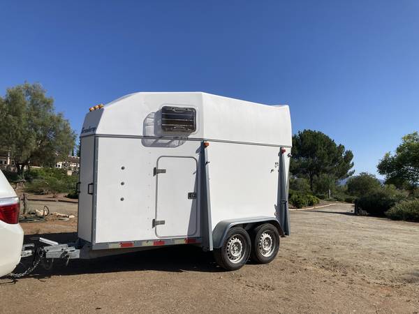 This trailer has been towed with a Toyota Highlander. Once you get used to the look and simplicity of this trailer you'll find it so easy to hook up and go on those short trips and long hauls. It keeps your horses comfortable and safe, and saves on gas.