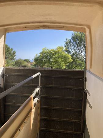 The rear of trailer is designed with an upper panel and a lower ramp. Tow with the upper panel up to eliminate exposure to the elements and muffle road noise. Travel with it down and air flow through the inside is increased. The ramp features 2 brand new heavy duty lift assist struts to make lowering and lifting easy. The floor of the ramp is made of wood with a thick slip -free mat.