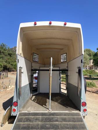 * This trailer has 2 custom fabricated interior pipe panel/gates which are attached below the chest bar, (see photos) allowing for safely hauling mini horses, or other smaller livestock. Each gate can easily be removed or buyer can remove entirely. I've hauled 2 horses and 2 minis at once to shows and during fire evacuations, horses and minis and dogs to the beach. You can get creative!