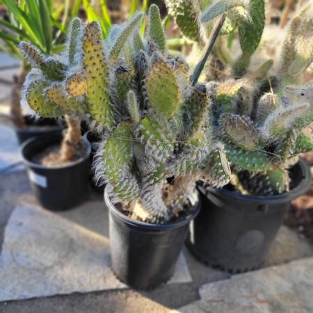 Hello, Large leafed opuntia Erinacea Ursine Snow!! I only have 2 and both are in 15 gallon containers and HUGE!!! All plants are well rooted and ready for your garden. Please set an appointment- day...