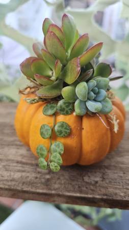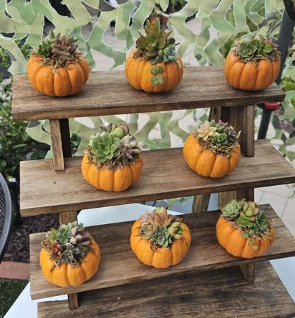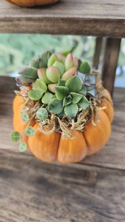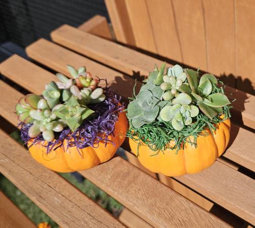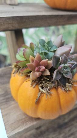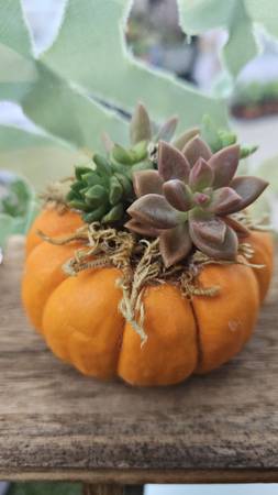 Mini pumpkins with live succulents, great as table centerpieces but affordable enough for each guest to have their own!