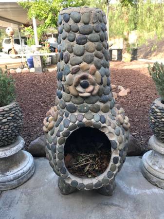 HAVE FOR SALE A HAND MADE RIVER ROCK GARDEN CHIMINEA AND 2 MATCHING POTS. ASKING $300 FOR SET. CONCRETE SITTING GARDEN YOUNG GIRL ASKING $60. CONCRETE ANGEL POTS WITH SUCCULENTS , $30 EACH CALL ,...