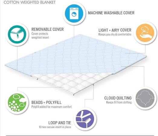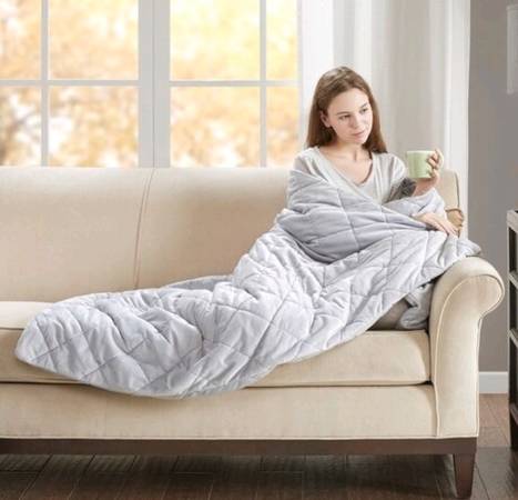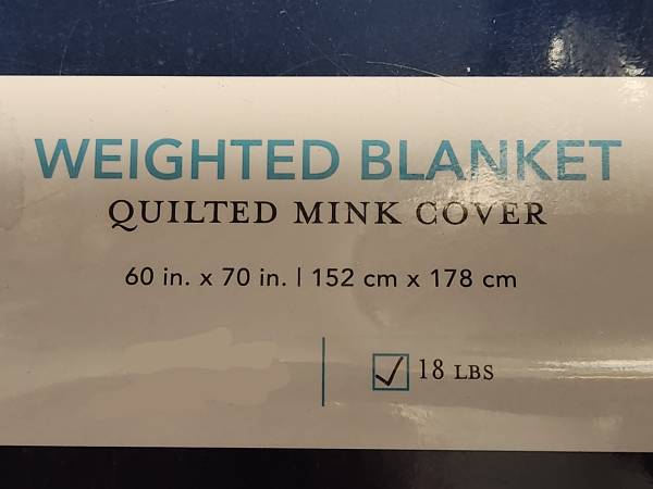 Brand new in a package, never been used. 18lb weighted blanket, measures 60" x 70". Originally $130+tax (see last picture). PRICE IS FIRM! For pick up only in El Cajon!!