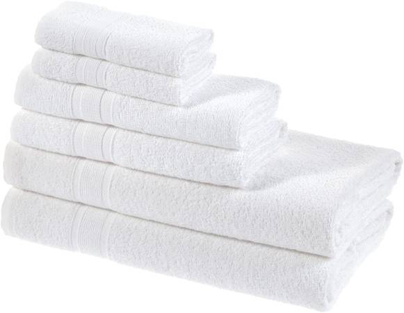 Brand new in a package, never been opened or used. The set includes 6 towels (two bath towels: 27" x 54", two hand towels: 16" x 30", two wash clothes: 16" x 30"). For pick up only in El Cajon....